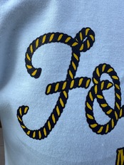 トラロープTシャツホワイトのプリントカラーはダークブラウンですが、こちらはネイビープリントです。