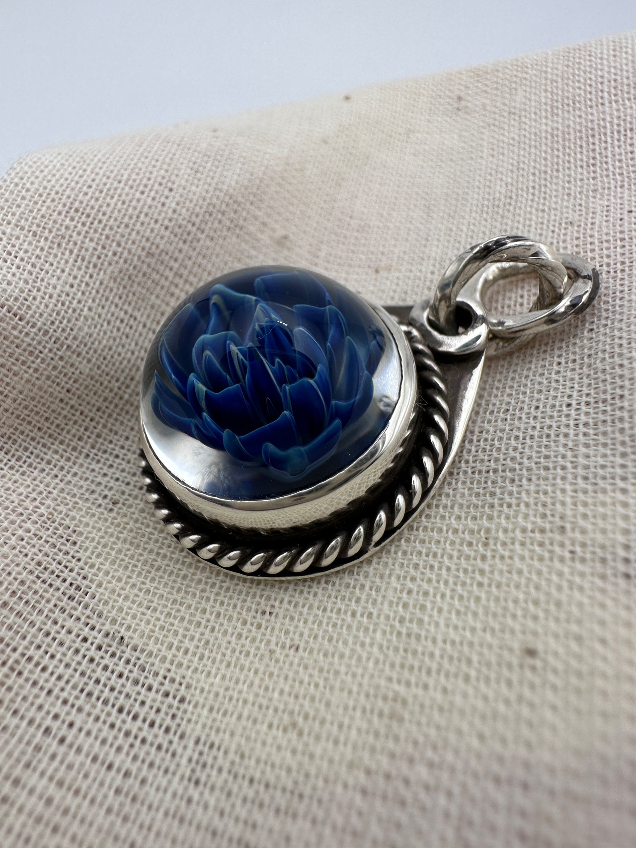No.007シルバー・アガベボロシリケイトガラスネックレストップ