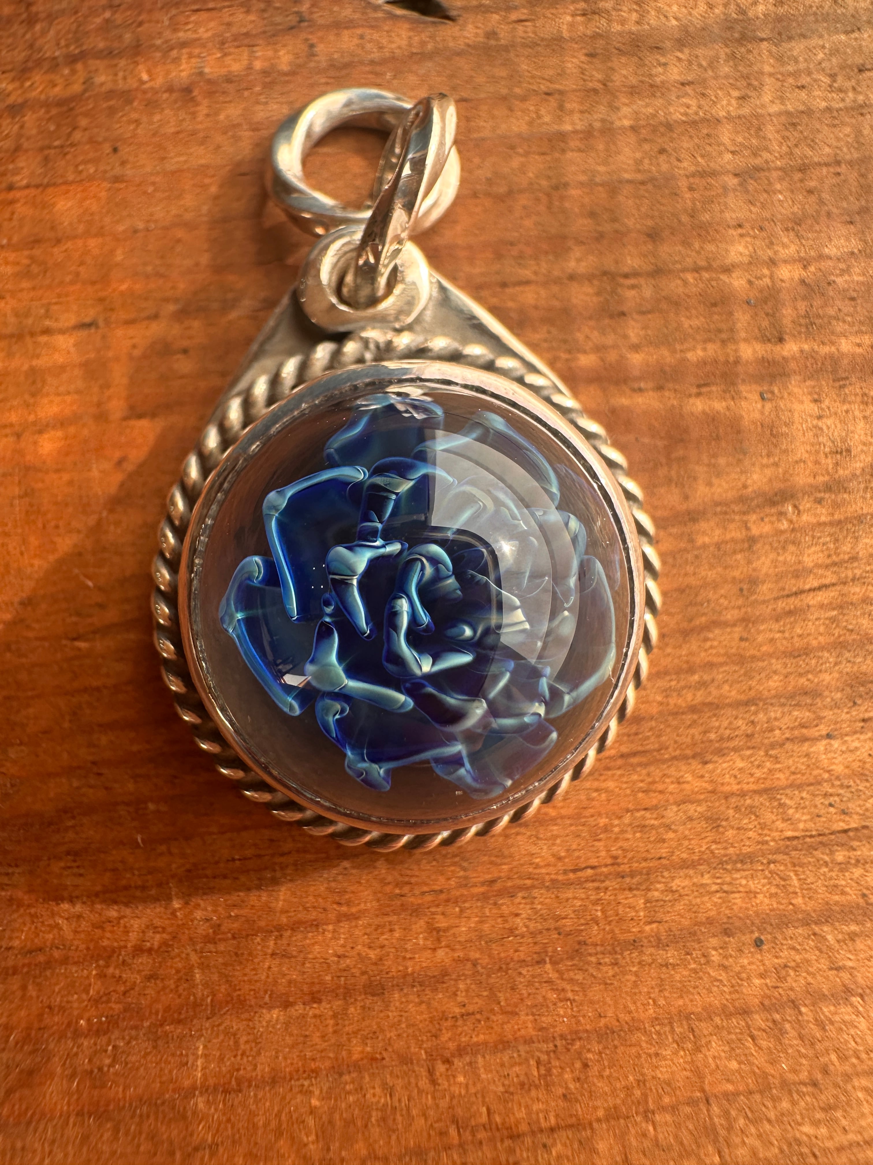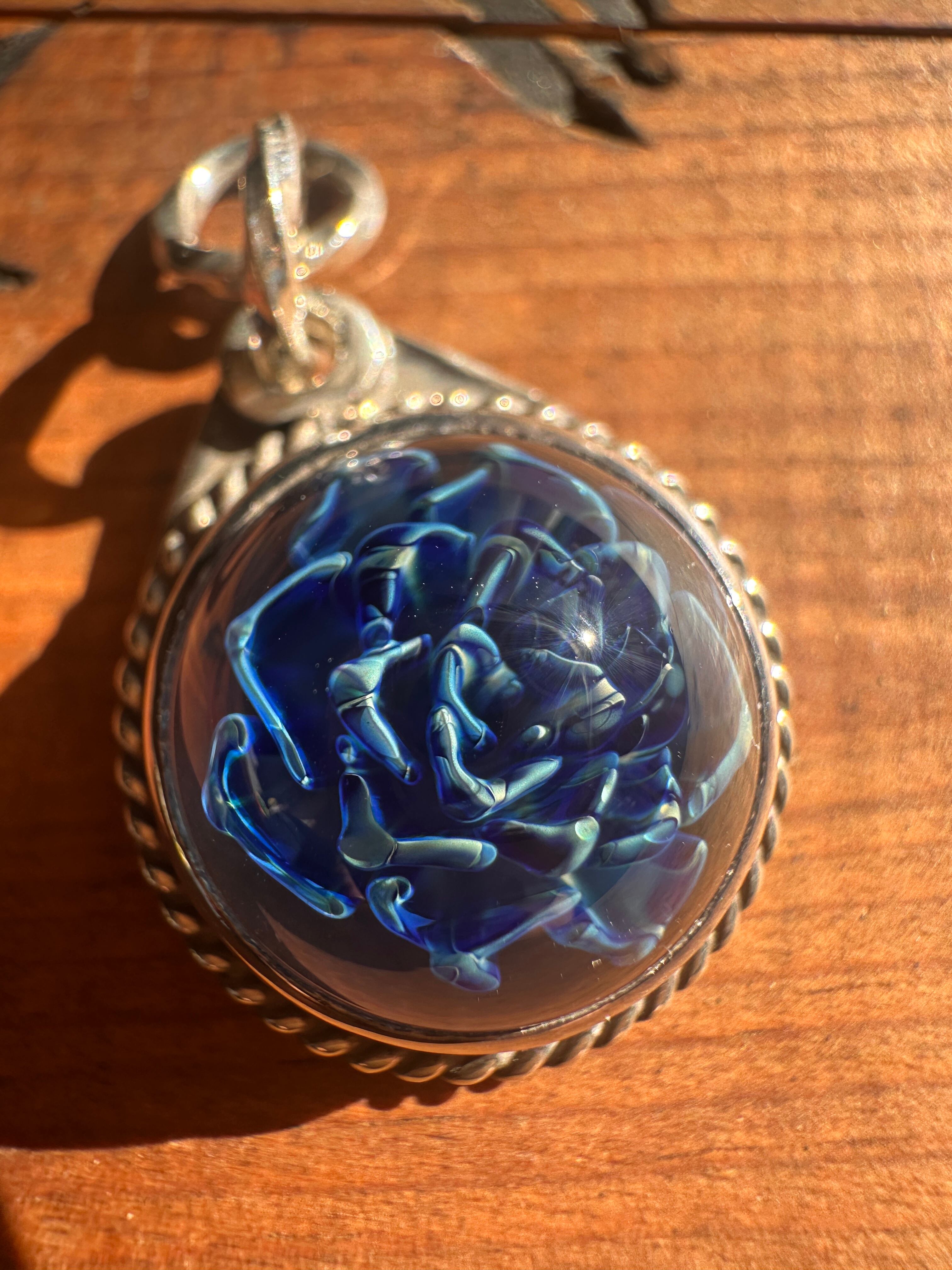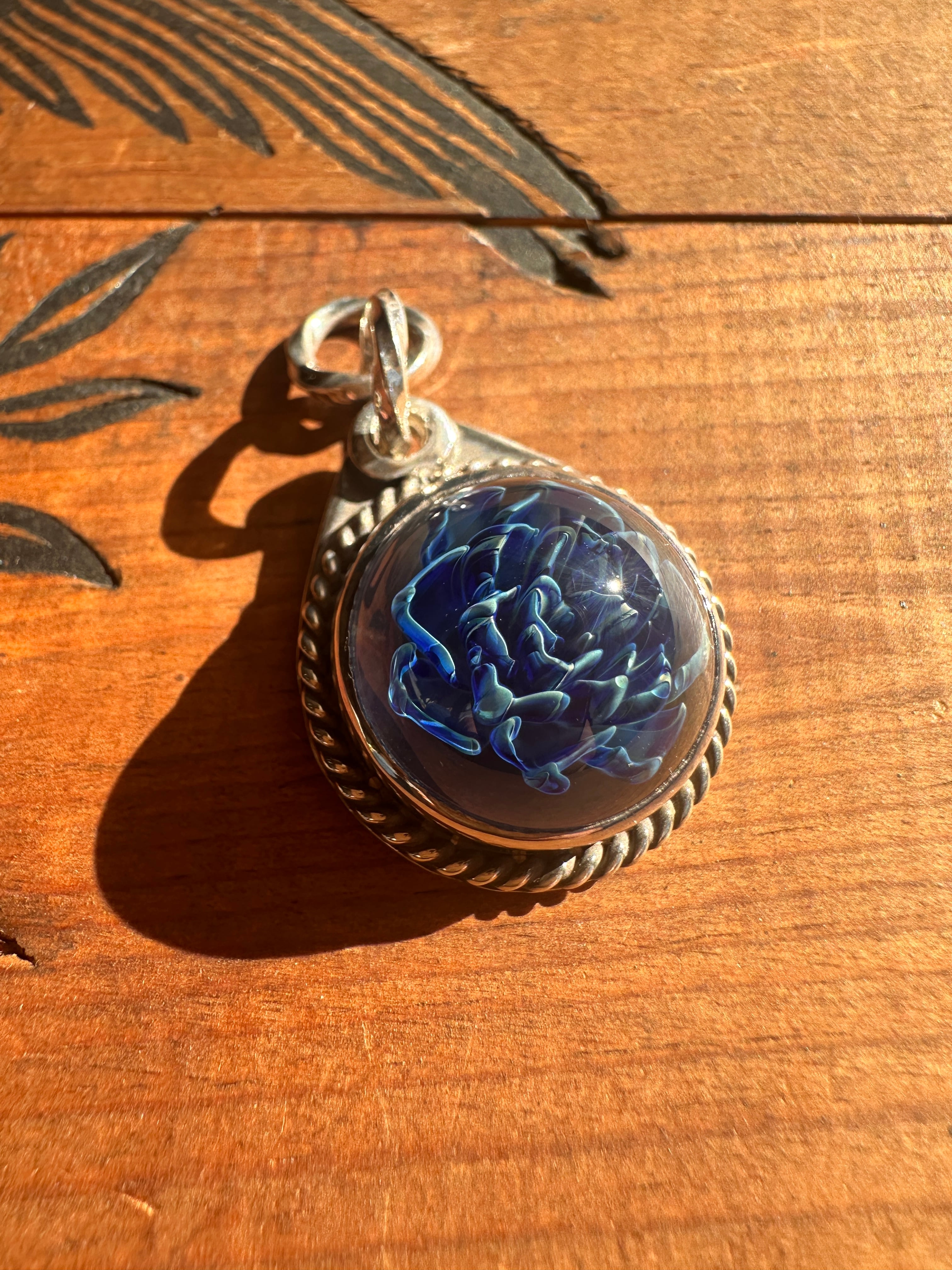 No.012シルバー・アガベボロシリケイトガラスネックレストップ