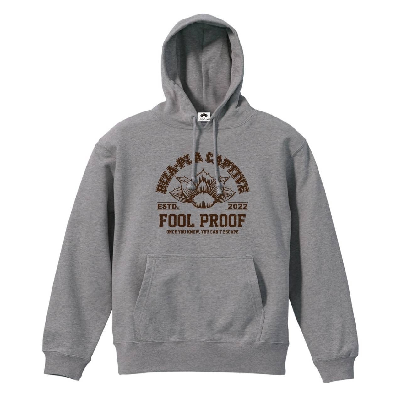 フロントBIZA-PLA(ピザプラ)ロゴプリントパーカー。